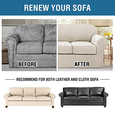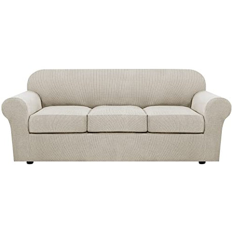 H.VERSAILTEX 4 Piece Stretch Sofa Covers for 3 Cushion Couch Covers for Living Room Furniture Slipcovers (Base Cover Plus 3 Seat Cushion Covers) Upgraded Thicker Jacquard Fabric (Sofa, Off White)