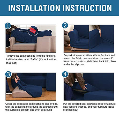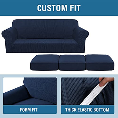 H.VERSAILTEX 4 Piece Stretch Sofa Covers for 3 Cushion Couch Covers for Living Room Furniture Slipcovers (Base Cover Plus 3 Seat Cushion Covers) Upgraded Thicker Jacquard Fabric (Sofa, Navy)