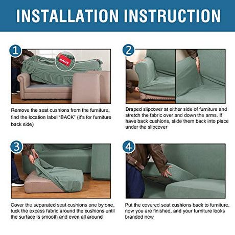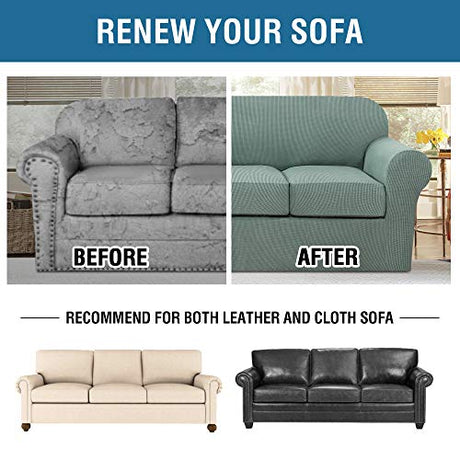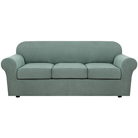 H.VERSAILTEX 4 Piece Stretch Sofa Covers for 3 Cushion Couch Covers for Living Room Furniture Slipcovers (Base Cover Plus 3 Seat Cushion Covers) Upgraded Thicker Jacquard Fabric (Sofa, Loden Frost)