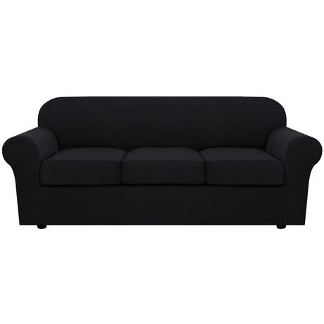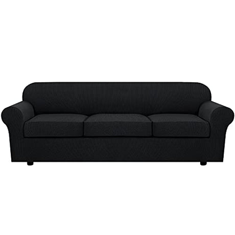 H.VERSAILTEX 4 Piece Stretch Sofa Covers for 3 Cushion Couch Covers for Living Room Furniture Slipcovers (Base Cover Plus 3 Seat Cushion Covers) Upgraded Thicker Jacquard Fabric (XL Sofa, Black)