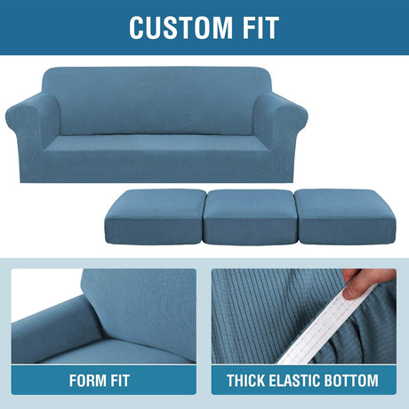 H.VERSAILTEX 4 Piece Stretch Sofa Covers for 3 Cushion Couch Covers for Living Room Furniture Slipcovers (Base Cover Plus 3 Seat Cushion Covers) Upgraded Thicker Jacquard Fabric (Sofa, Dusty Blue)