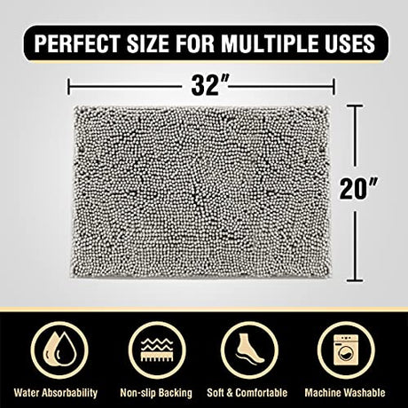 H.VERSAILTEX Bath Mat Bath Rug for Bathroom Luxury Chenille Bathroom Rug Mat Extra Soft and Absorbent Microfiber Shaggy Rugs Non Slip Rug Quick Dry Bath Mat Washable, 20 x 32 Inches, Dove Gray
