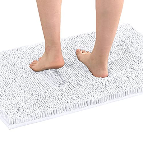 H.VERSAILTEX Bath Mat Bath Rug for Bathroom Luxury Chenille Bathroom Rug Mat Extra Soft and Absorbent Microfiber Shaggy Rugs Non Slip Rug Quick Dry Bath Mat Washable, 17 x 24 Inches, White