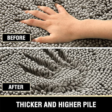 H.VERSAILTEX Bath Mat Bath Rug for Bathroom Luxury Chenille Bathroom Rug Mat Extra Soft and Absorbent Microfiber Shaggy Rugs Non Slip Rug Quick Dry Bath Mat Washable, 17 x 24 Inches, Grey