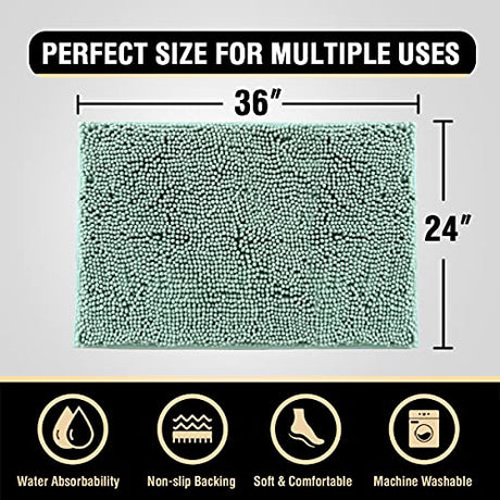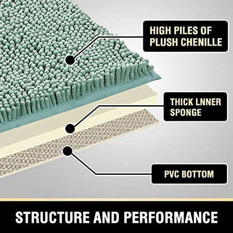 H.VERSAILTEX Bath Mat Bath Rug for Bathroom Luxury Chenille Bathroom Rug Mat Extra Soft and Absorbent Microfiber Shaggy Rugs Non Slip Rug Quick Dry Bath Mat Washable, 24 x 36 Inches, Aqua Foam