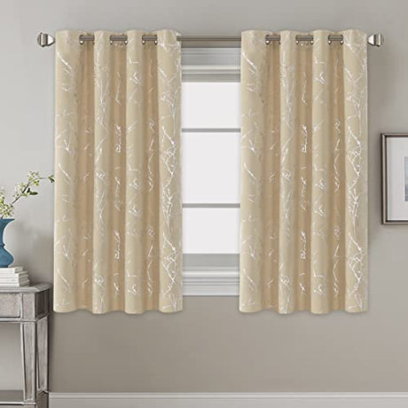 H.VERSAILTEX Blackout Curtains for Bedroom Foil Print Twig Tree Branch Thermal Insulated Grommet Curtain Drapes Light Blocking Thick Soft Window Curtains for Living 52 x 54 Inch Beige 2 Panels