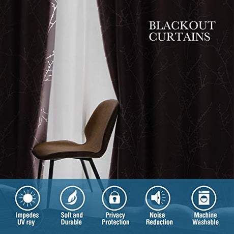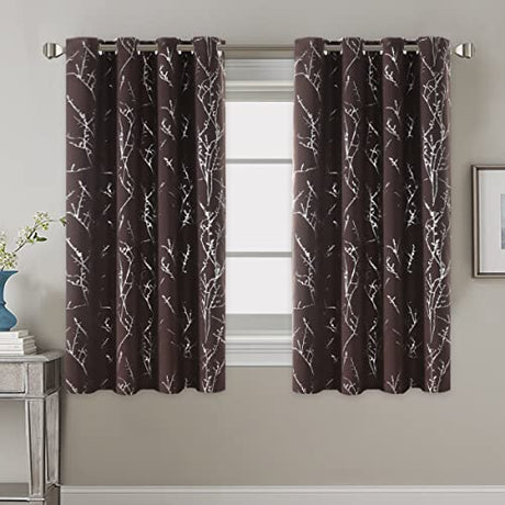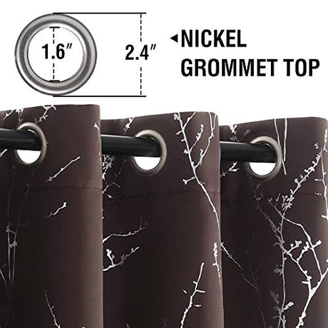 H.VERSAILTEX Blackout Curtains for Bedroom Foil Print Twig Tree Branch Thermal Insulated Grommet Curtain Drapes Light Blocking Thick Soft Window Curtains for Living 52 x 54 Inch Brown 2 Panels