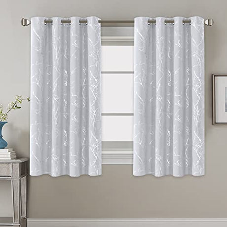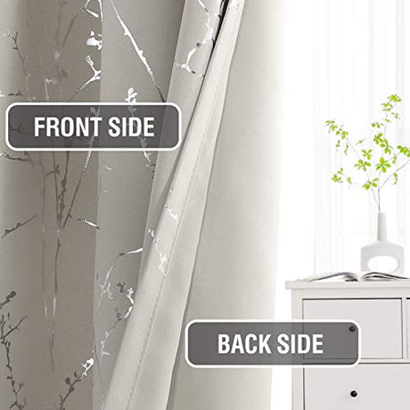 H.VERSAILTEX Blackout Curtains for Bedroom Foil Print Twig Tree Branch Thermal Insulated Grommet Curtain Drapes Light Blocking Thick Soft Window Curtains for Living 52 x 54 Inch Greyish White 2 Panels
