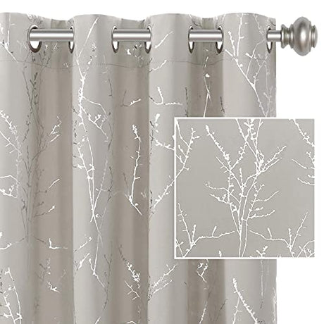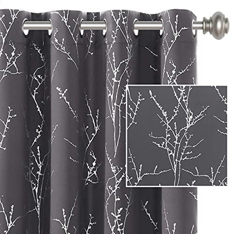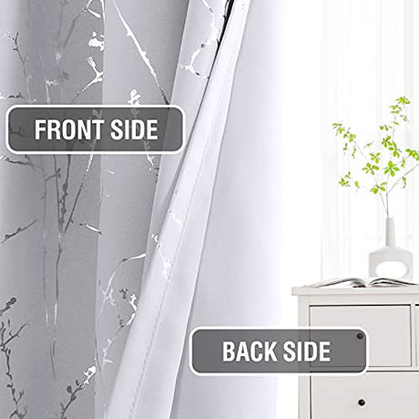 H.VERSAILTEX Blackout Curtains for Bedroom Foil Print Twig Tree Branch Thermal Insulated Grommet Curtain Drapes Light Blocking Thick Soft Window Curtains for Living 52 x 54 Inch Grey 2 Panels