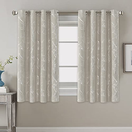H.VERSAILTEX Blackout Curtains for Bedroom Foil Print Twig Tree Branch Thermal Insulated Grommet Curtain Drapes Light Blocking Thick Soft Window Curtains for Living 52 x 45 Inch Stone 2 Panels