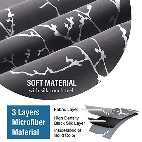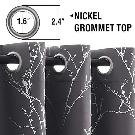 H.VERSAILTEX Blackout Curtains for Bedroom Foil Print Twig Tree Branch Thermal Insulated Grommet Curtain Drapes Light Blocking Thick Soft Window Curtains for Living 52 x 54 Inch Charcoal Gray 2 Panels
