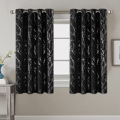 H.VERSAILTEX Blackout Curtains for Bedroom Foil Print Twig Tree Branch Thermal Insulated Grommet Curtain Drapes Light Blocking Thick Soft Window Curtains for Living 52 x 54 Inch Jet Black 2 Panels