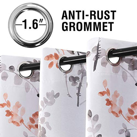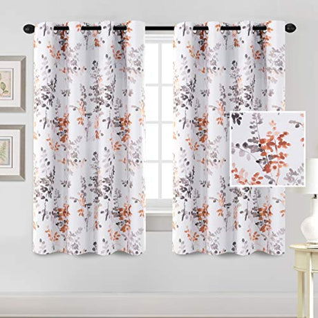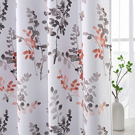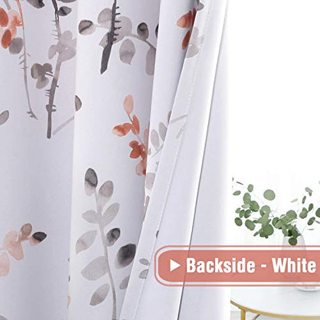 H.VERSAILTEX Blackout Curtains for Living Room Darkening Thermal Insulated Panels 45 Inch Long Light Blocking Gromment Curtains/Drapes, Grey and Coral Vintage Classical Floral Printing, 2 Panels