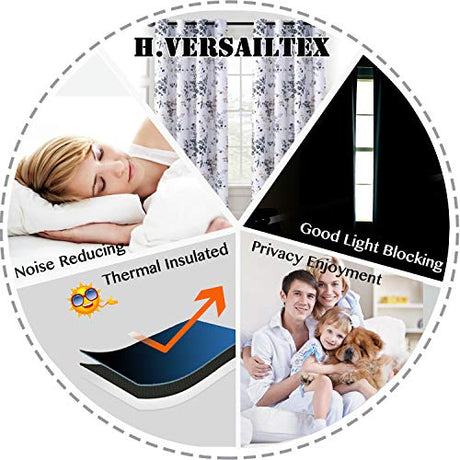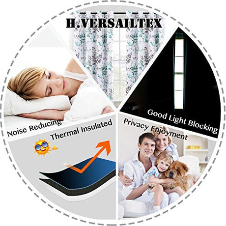 H.VERSAILTEX Blackout Curtains for Living Room Darkening Thermal Insulated Panels 54 Inch Long Light Blocking Gromment Curtains/Drapes, Grey and Teal Vintage Classical Floral Printing, 2 Panels