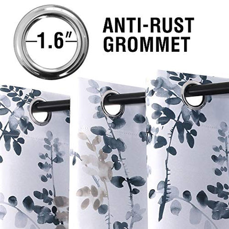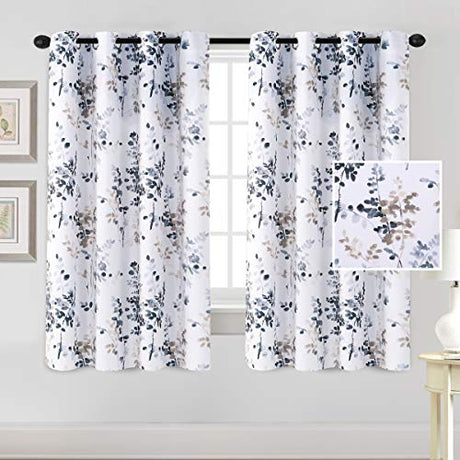 H.VERSAILTEX Blackout Curtains for Living Room Darkening Thermal Insulated Panels 45 Inch Long Light Blocking Gromment Curtains/Drapes, Bluestone and Taupe Vintage Classical Floral Printing, 2 Panels