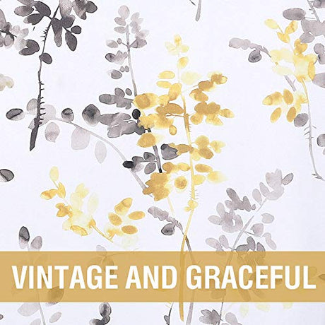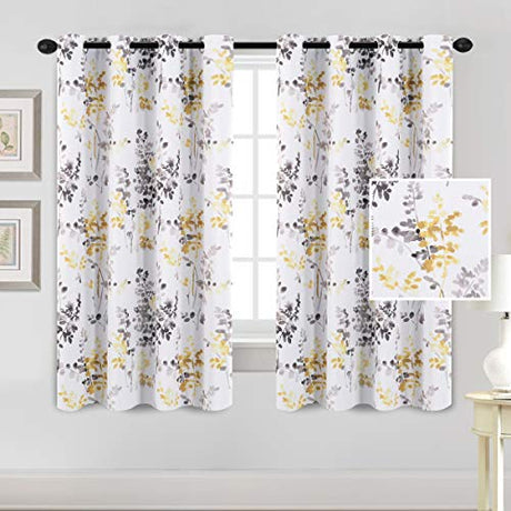 H.VERSAILTEX Blackout Curtains for Living Room Darkening Thermal Insulated Panels 45 Inch Long Light Blocking Gromment Curtains/Drapes, Grey and Yellow Vintage Classical Floral Printing, 2 Panels