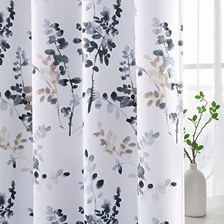 H.VERSAILTEX Blackout Curtains for Living Room Darkening Thermal Insulated Panels 45 Inch Long Light Blocking Gromment Curtains/Drapes, Grey and Sage Vintage Classical Floral Printing, 2 Panels