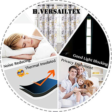 H.VERSAILTEX Blackout Curtains for Living Room Darkening Thermal Insulated Panels 54 Inch Long Light Blocking Gromment Curtains/Drapes, Grey and Yellow Vintage Classical Floral Printing, 2 Panels
