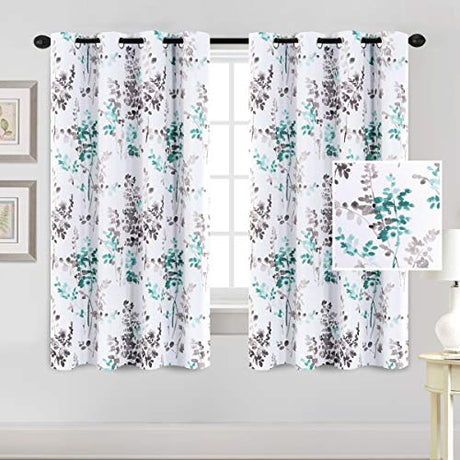 H.VERSAILTEX Blackout Curtains for Living Room Darkening Thermal Insulated Panels 45 Inch Long Light Blocking Gromment Curtains/Drapes, Grey and Turquoise Vintage Classical Floral Printing, 2 Panels