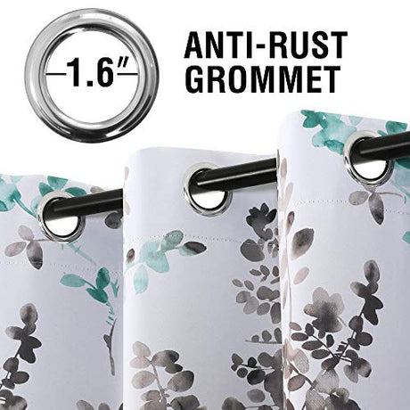 H.VERSAILTEX Blackout Curtains for Living Room Darkening Thermal Insulated Panels 45 Inch Long Light Blocking Gromment Curtains/Drapes, Grey and Teal Vintage Classical Floral Printing, 2 Panels