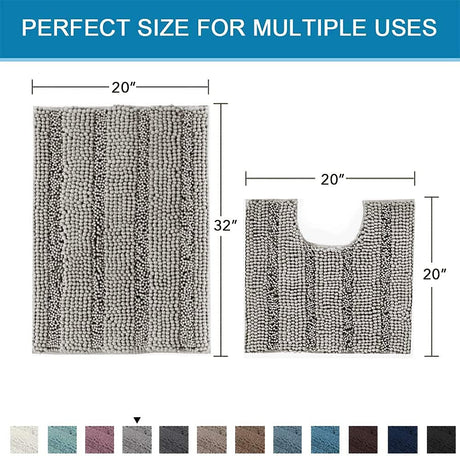 Chenille Bath Rug Set PVC Backing 20" x 32" & 17" x 24"