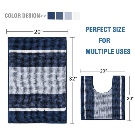 Chenille Ombre Bath Rug Set 20"x 32" & 20"x 20" U Shape