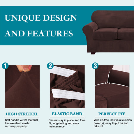 3-Piece Stretch Velvet Loveseat 2 Seater Slipcover