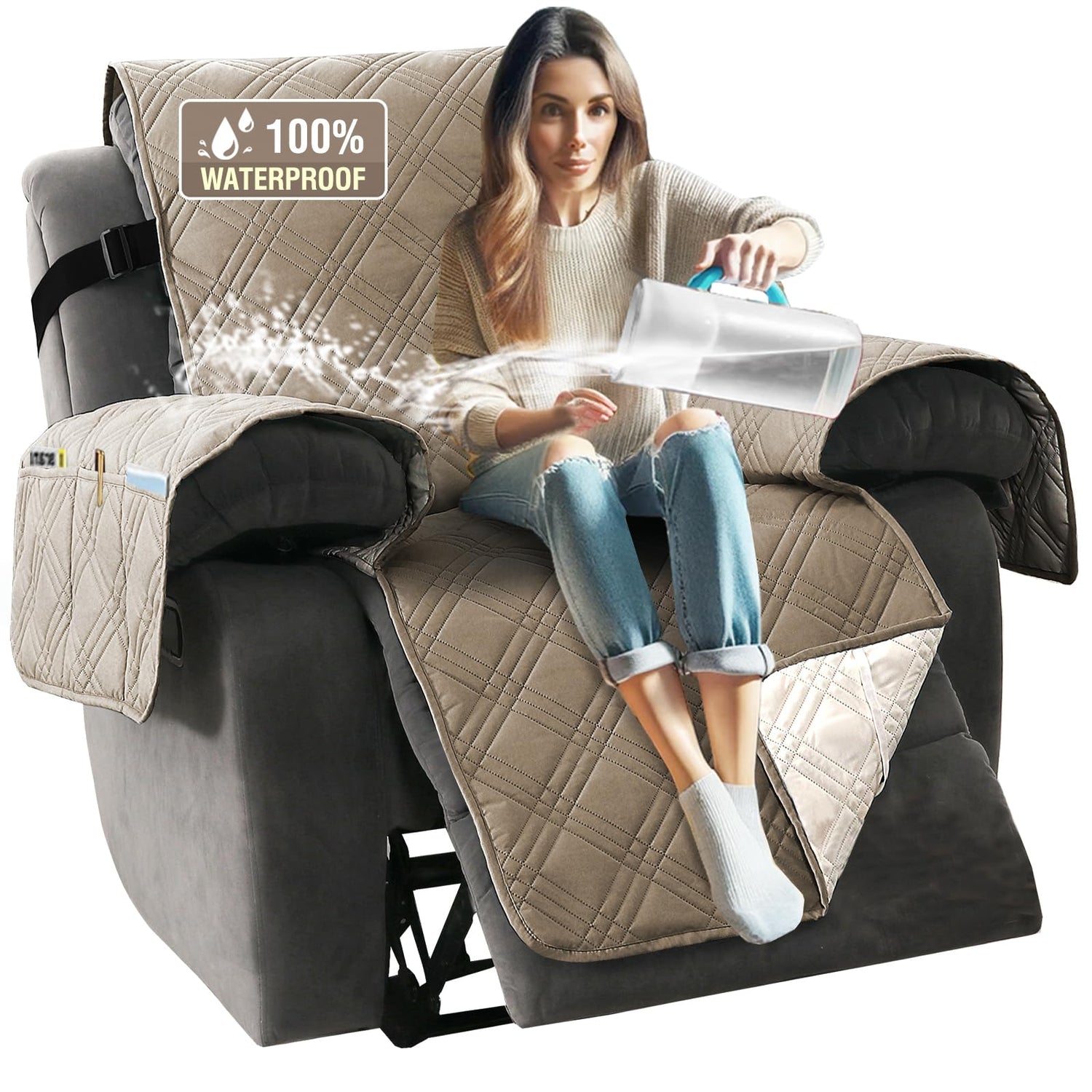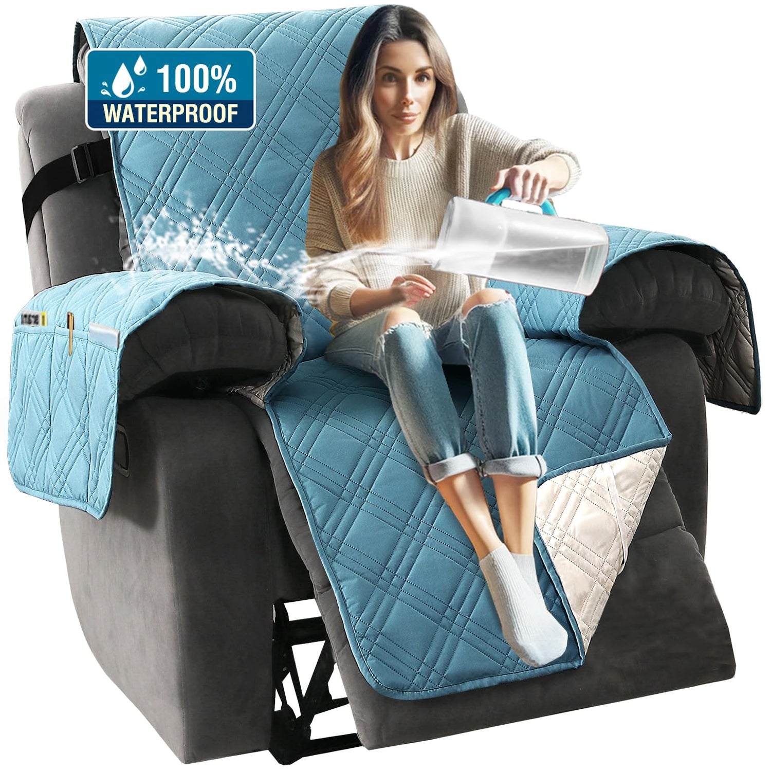 PrimeBeau 100% Waterproof Reversible Recliner Covers with Elastic Straps