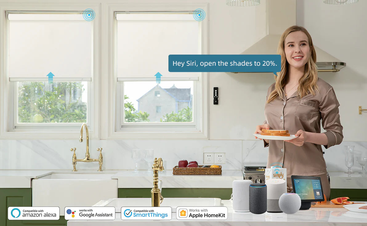 With smart devices and hubs, you can ensure your home remains just as you like it, even when you're away, thanks to pre-set arrangements. Our versatile range of motors allows for integration with numerous apps, including Apple HomeKit, Amazon Alexa, Samsung SmartThings, Google Assistant, and more, giving you the freedom to control your shades through your preferred platform.