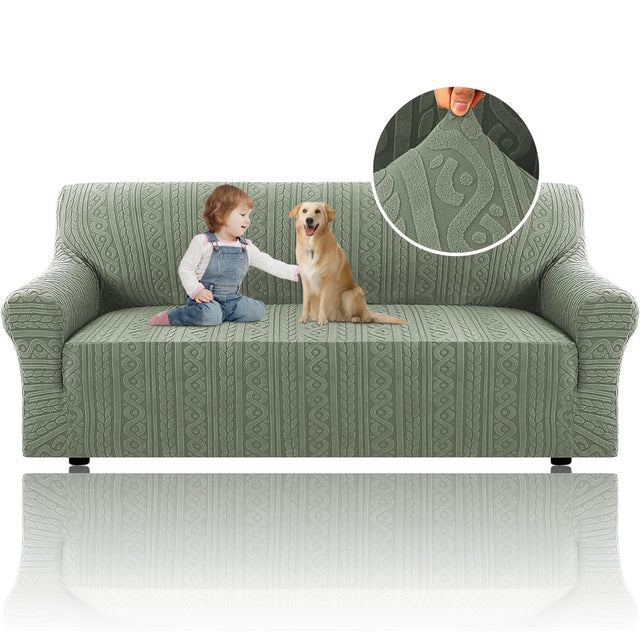 H.VERSAILTEX 2024 Newest Jacquard Couch Covers for 3 Cushion Couch 1 Piece Stretch Sofa Covers Furniture Protector Anti-Slip Soft Thickened Dogs Slipcovers Washable Spiral Pattern(Sofa, Sea Grass)