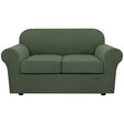 H.VERSAILTEX 3 Piece Stretch Sofa Covers for 2 Cushion Loveseat Couch Covers for Living Room Furniture Cover (Base Cover Plus 2 Seat Cushion Covers) Thicker Jacquard Fabric(Medium, Bronze Green)