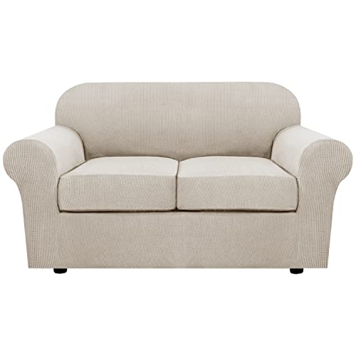 H.VERSAILTEX 3 Piece Stretch Sofa Covers for 2 Cushion Loveseat Couch Covers for Living Room Furniture Cover (Base Cover Plus 2 Seat Cushion Covers) Thicker Jacquard Fabric(Medium, Island Fossi)