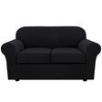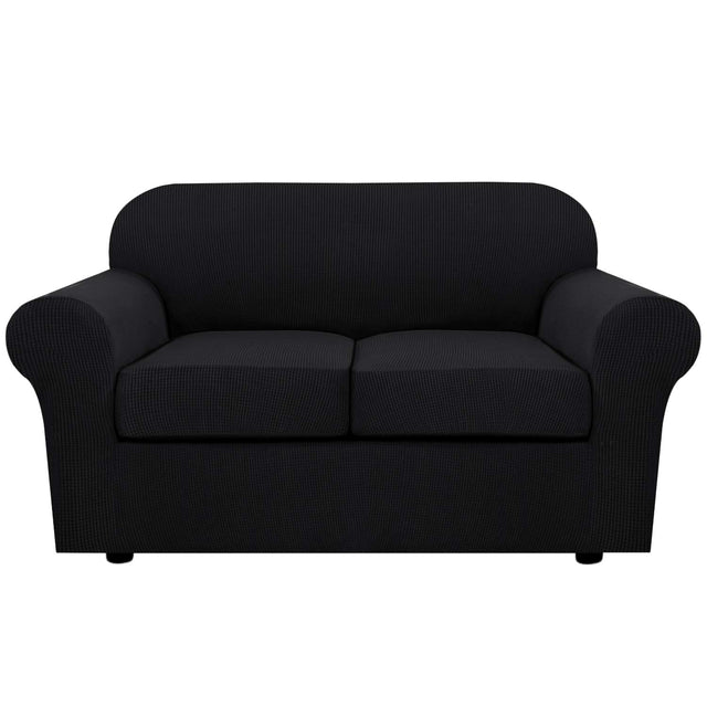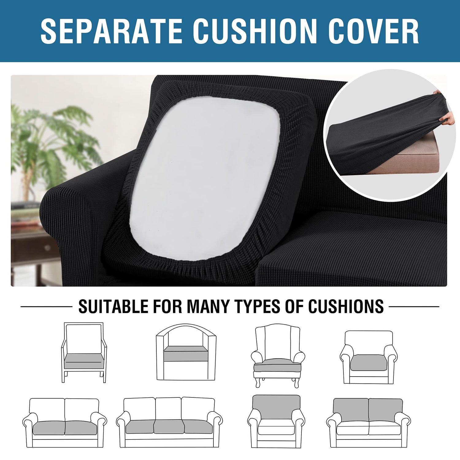 H.VERSAILTEX 3 Piece Stretch Sofa Covers for 2 Cushion Loveseat Couch Covers for Living Room Furniture Cover (Base Cover Plus 2 Seat Cushion Covers) Thicker Jacquard Fabric(Medium Sofa, Black)