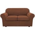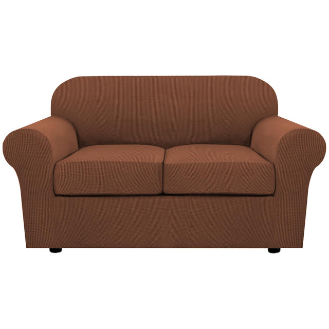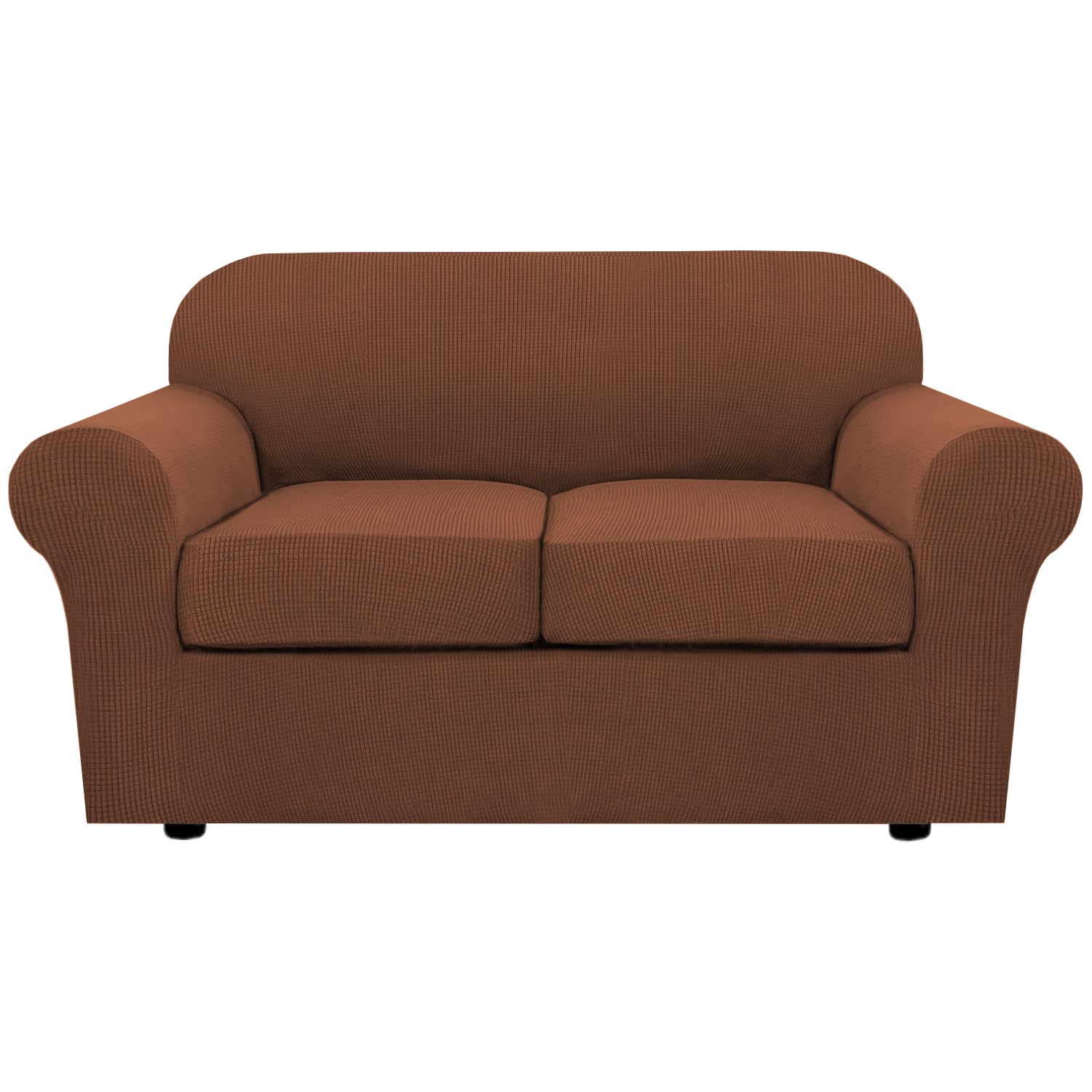 H.VERSAILTEX 3 Piece Stretch Sofa Covers for 2 Cushion Loveseat Couch Covers for Living Room Furniture Cover (Base Cover Plus 2 Seat Cushion Covers) Thicker Jacquard Fabric(Medium Sofa, Caramel)