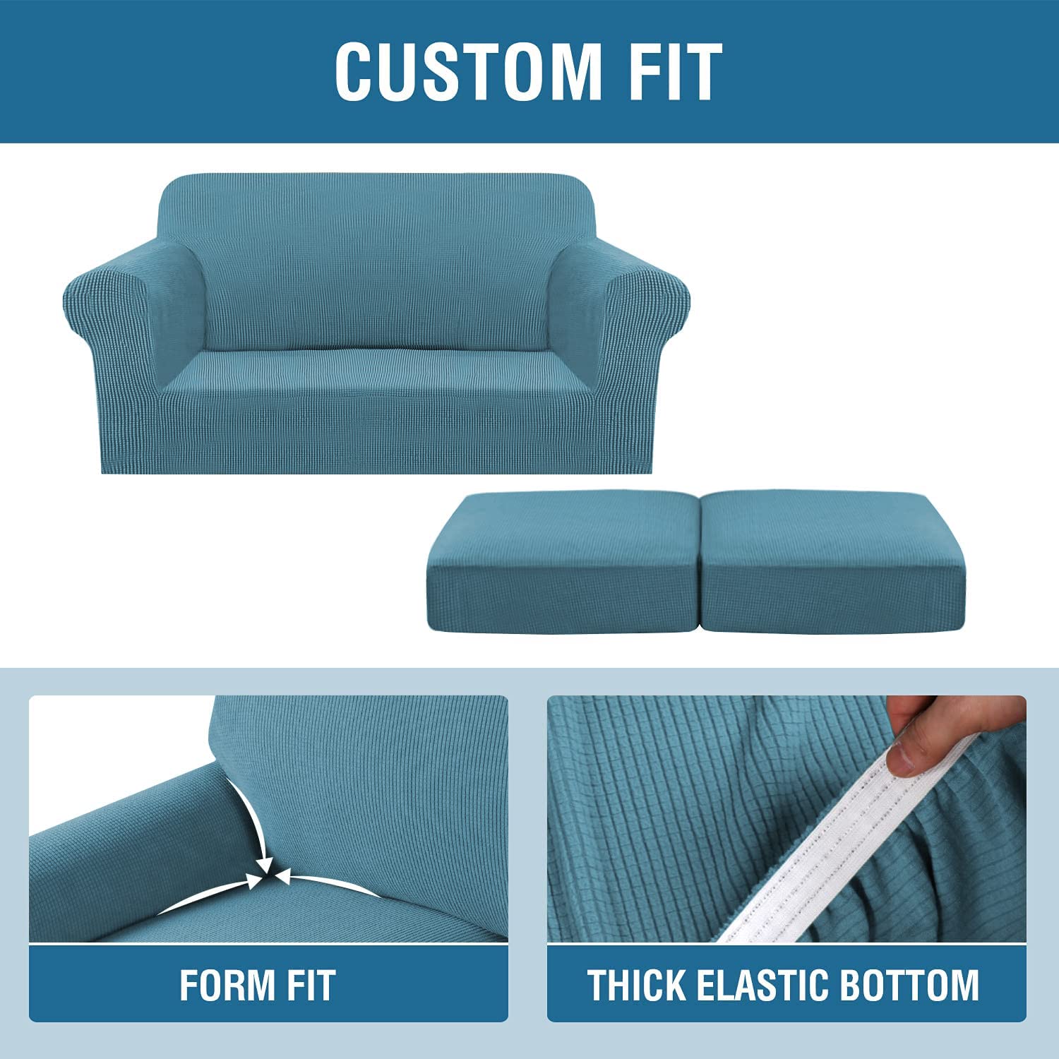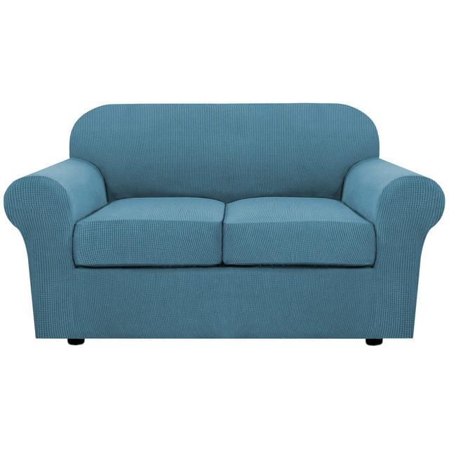 H.VERSAILTEX 3 Piece Stretch Sofa Covers for 2 Cushion Loveseat Couch Covers for Living Room Furniture Cover (Base Cover Plus 2 Seat Cushion Covers) Thicker Jacquard Fabric(Medium, Storm Blue)