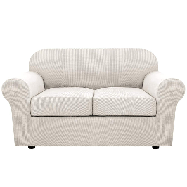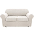 H.VERSAILTEX 3 Piece Stretch Sofa Covers for 2 Cushion Loveseat Couch Covers for Living Room Sofa Slipcovers (Base Cover Plus 2 Seat Cushion Covers) Thicker Jacquard Fabric(Medium Sofa, Ivory)