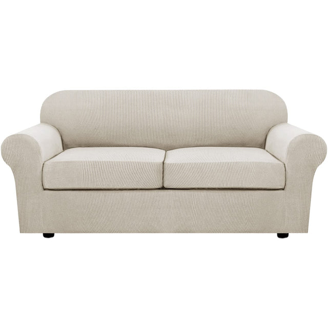 H.VERSAILTEX 3 Piece Stretch Sofa Covers for 2 Cushion Sofa Couch Covers for Living Room Sofa Slipcovers (Base Cover Plus 2 Seat Cushion Covers) Thicker Jacquard Fabric(Large Sofa, Island Fossi)
