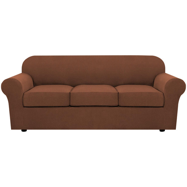 H.VERSAILTEX 4 Piece Stretch Sofa Covers for 3 Cushion Couch Covers for Living Room Furniture Slipcovers (Base Cover Plus 3 Seat Cushion Covers) Upgraded Thicker Jacquard Fabric (Sofa, Caramel)