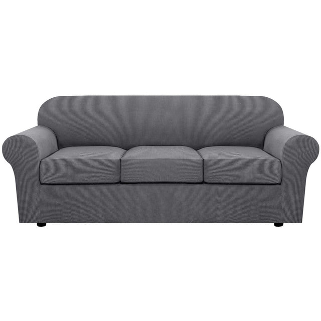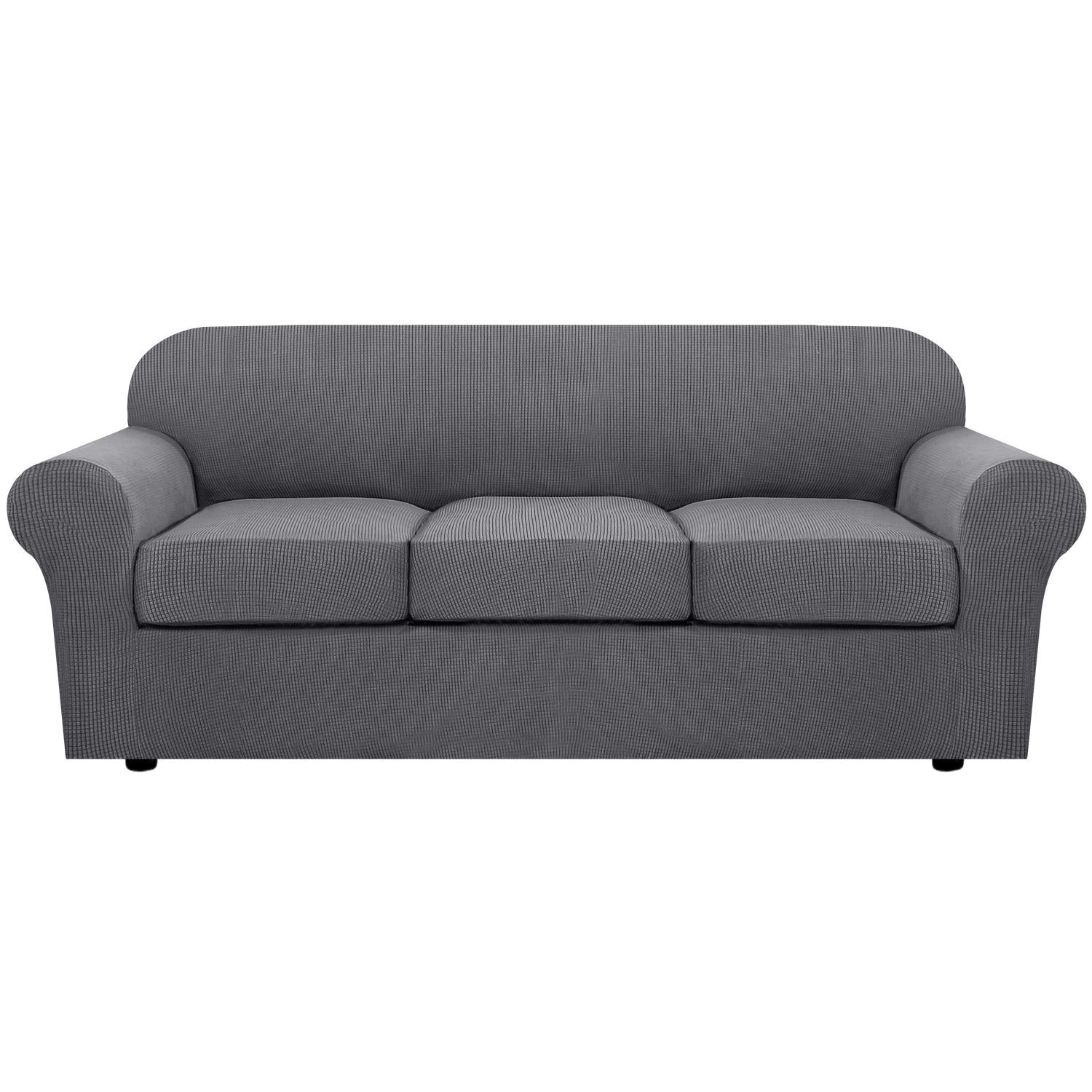 H.VERSAILTEX 4 Piece Stretch Sofa Covers for 3 Cushion Couch Covers for Living Room Furniture Slipcovers (Base Cover Plus 3 Seat Cushion Covers) Upgraded Thicker Jacquard Fabric (Sofa, Grey)