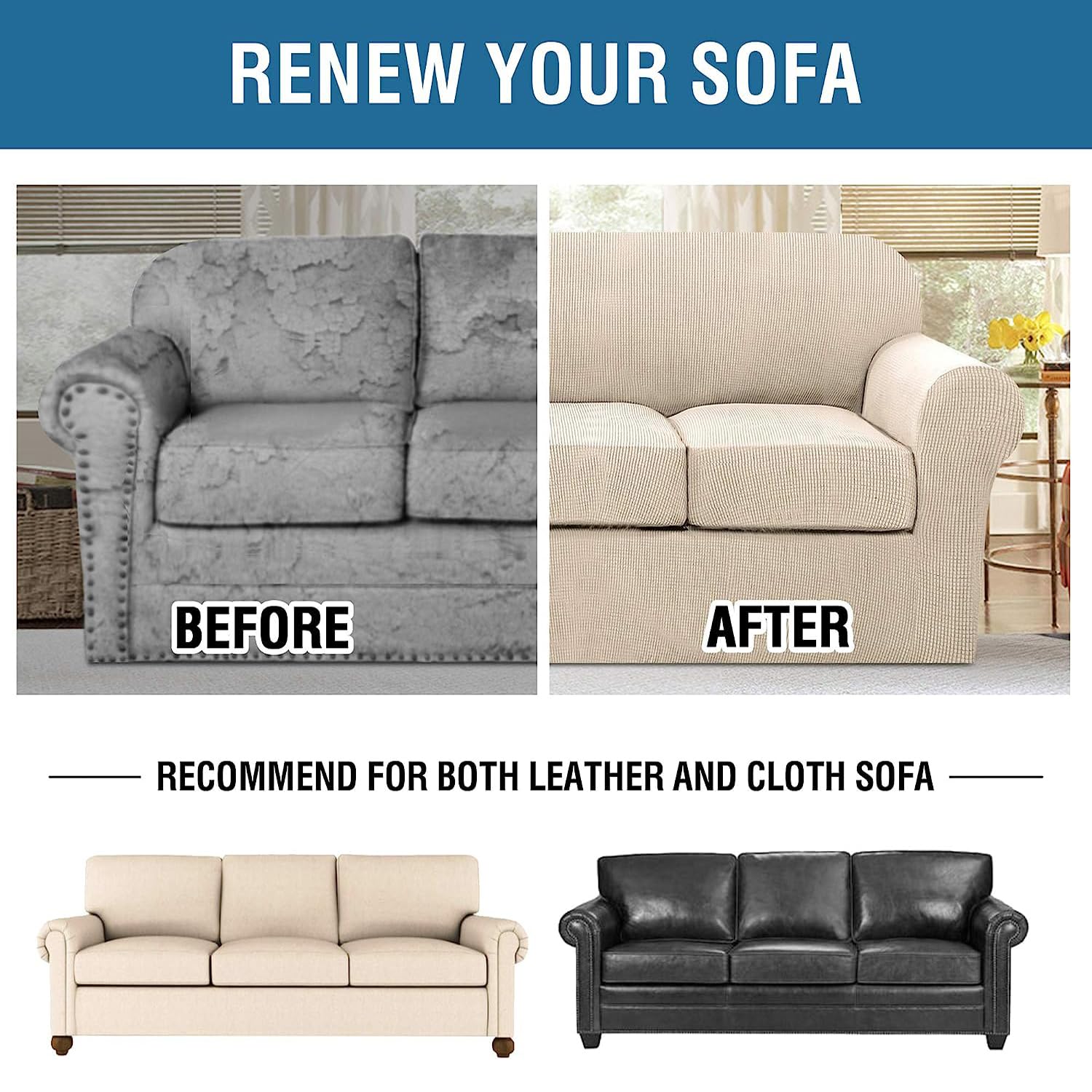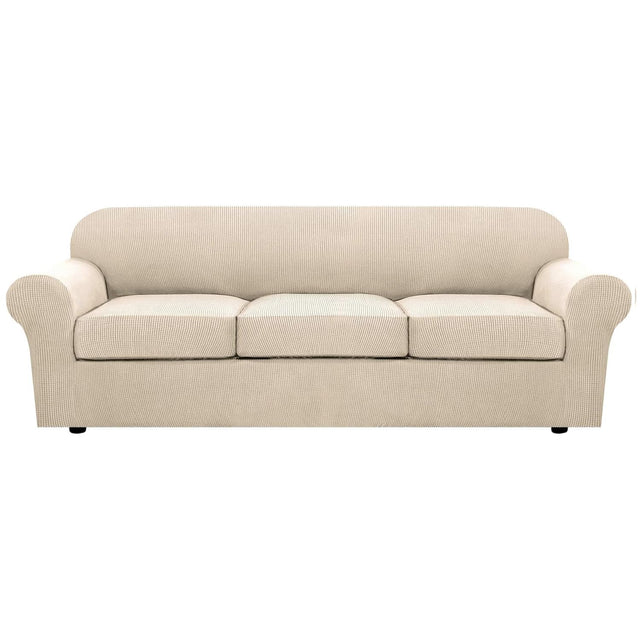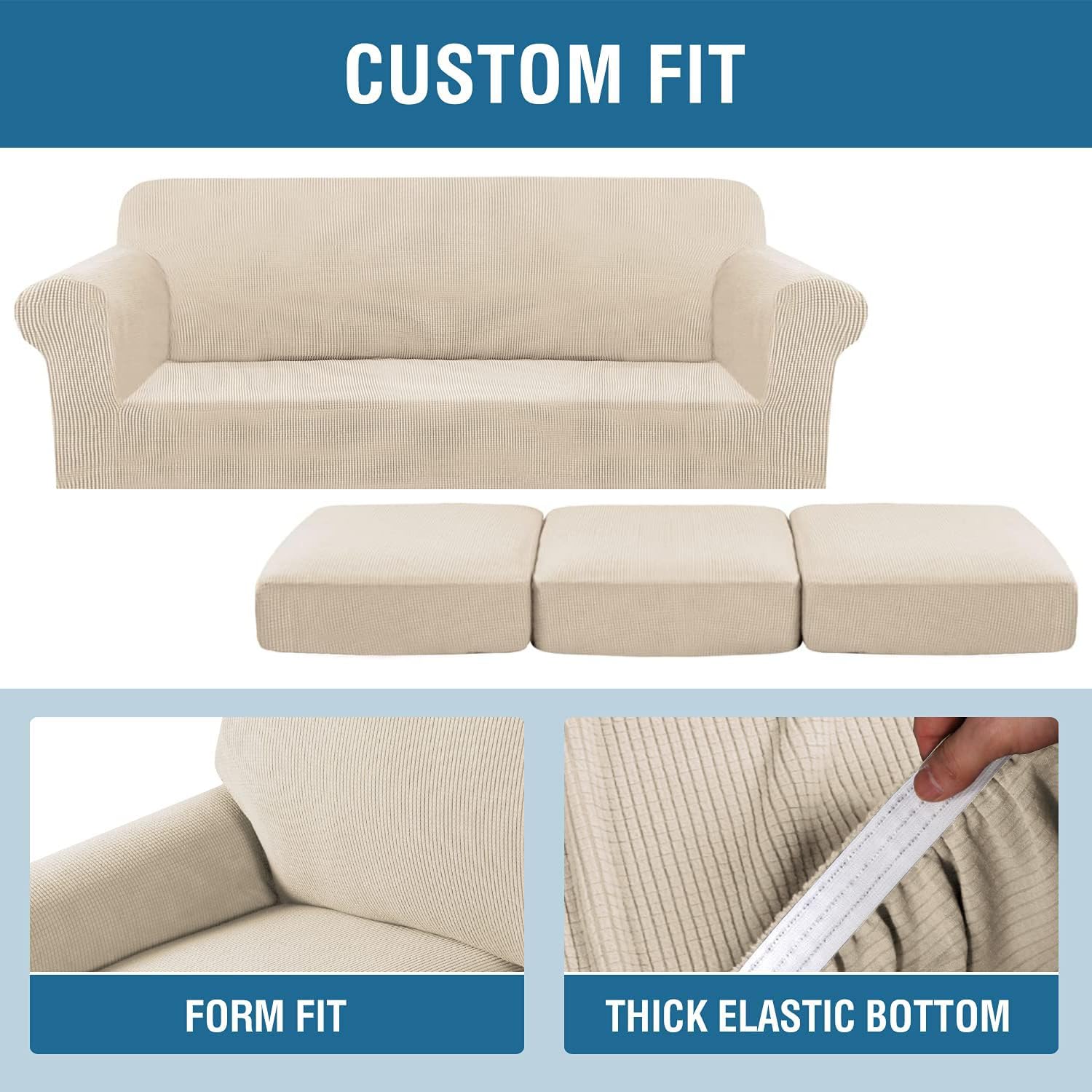 H.VERSAILTEX 4 Piece Stretch Sofa Covers for 3 Cushion Couch Covers Furniture Slipcovers for Living Room (1 Base Cover Plus 3 Seat Cushion Covers) Thicker Jacquard Fabric Cover (XL Sofa, Natural)