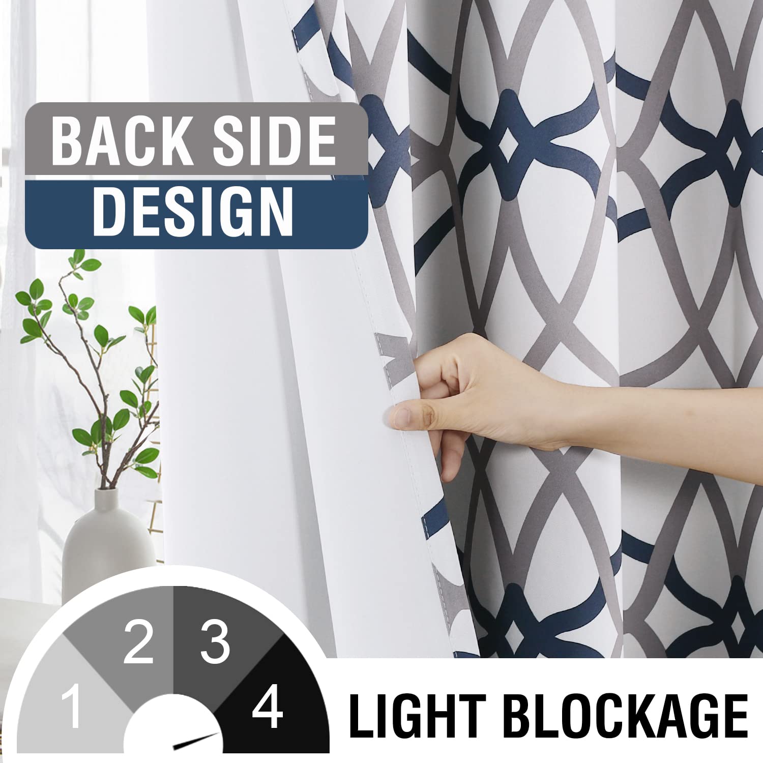 H.VERSAILTEX Blackout Curtains Printed Design for Bedroom 84 Inch Length 2 Panels Set Thermal Insulated Curtains Living Room Geometric Modern Grommet Window Drapes - Dark Denim and Grey
