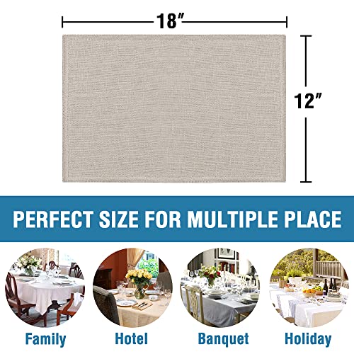 H.VERSAILTEX Linen Placemats Set of 6 Premium Solid Table Placemats for Dining Table Spill-Proof Waterproof Table Mats Heat-Resistant Kitchen Table Mats Washable, 12x18 inches, Taupe
