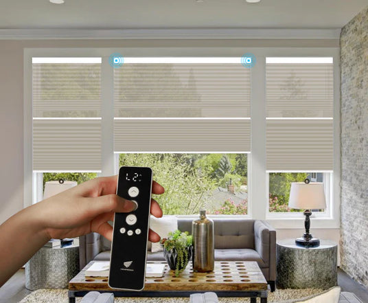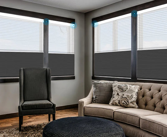 Experience smooth and quiet operation with our motorized cellular shades, featuring Soft Stop technology.