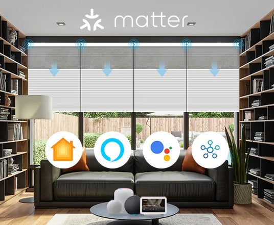 The highlight of our collection is the Matter motor, which represents the forefront of smart shade technology. Utilizing the Matter over Thread protocol, it seamlessly connects with major platforms such as Apple HomeKit, Amazon Alexa, Samsung SmartThings, and Google Assistant. This motor allows for intuitive control from your preferred app, providing faster response times, stable connections, and enhanced data security.